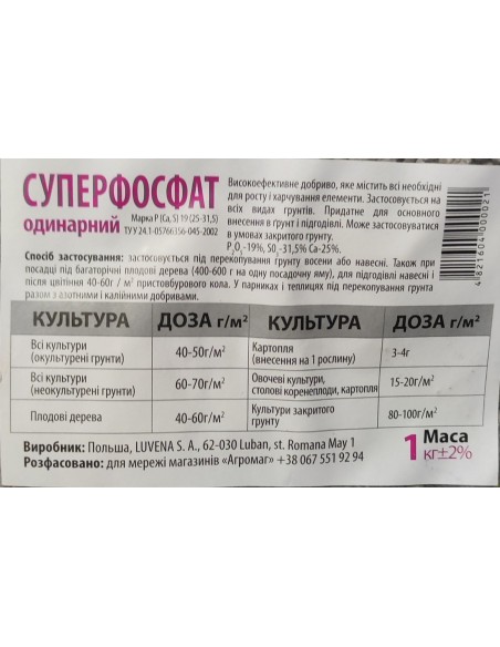 Не можна змішувати простий суперфосфат з аміачною селітрою, сечовиною, вапном, доломітом, крейдою.