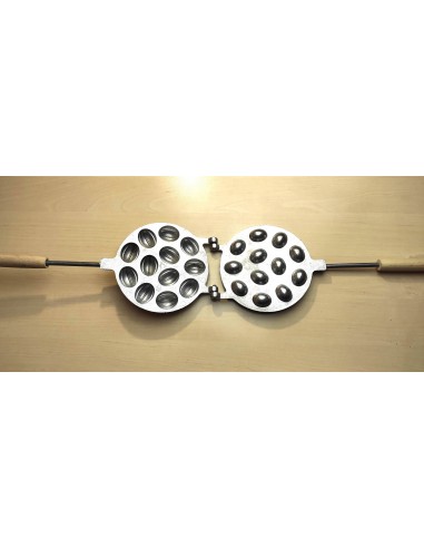 Форма горішниця складається з двох напів-форм, які легко з'єднуються одна з одною. Також має дві довгі дерев'яні ручки, що роблять процес приготування печива максимально зручним і безпечним.