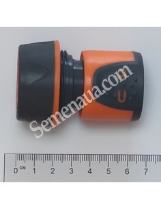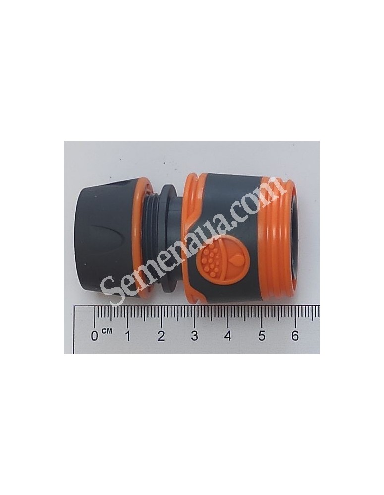 З'єднувальний коннектор 1/2 "- 5/8" "Юмей" може бути встановлений на обидва кінці шланга і дозволяє швидко приєднувати інші елементи системи поливу (зрошувачі, пістолети, трійники і т.д.) Зуби спеціальної форми розташовані всередині цанги-коннектора, забезпечують надійне закріплення тонкостінних шлангів, що дозволяє чіпко утримувати шланг під тиском води. Поліпшеної конфігурації на основі гуми, що дозволяє комфортно використовувати коннектор за призначенням.