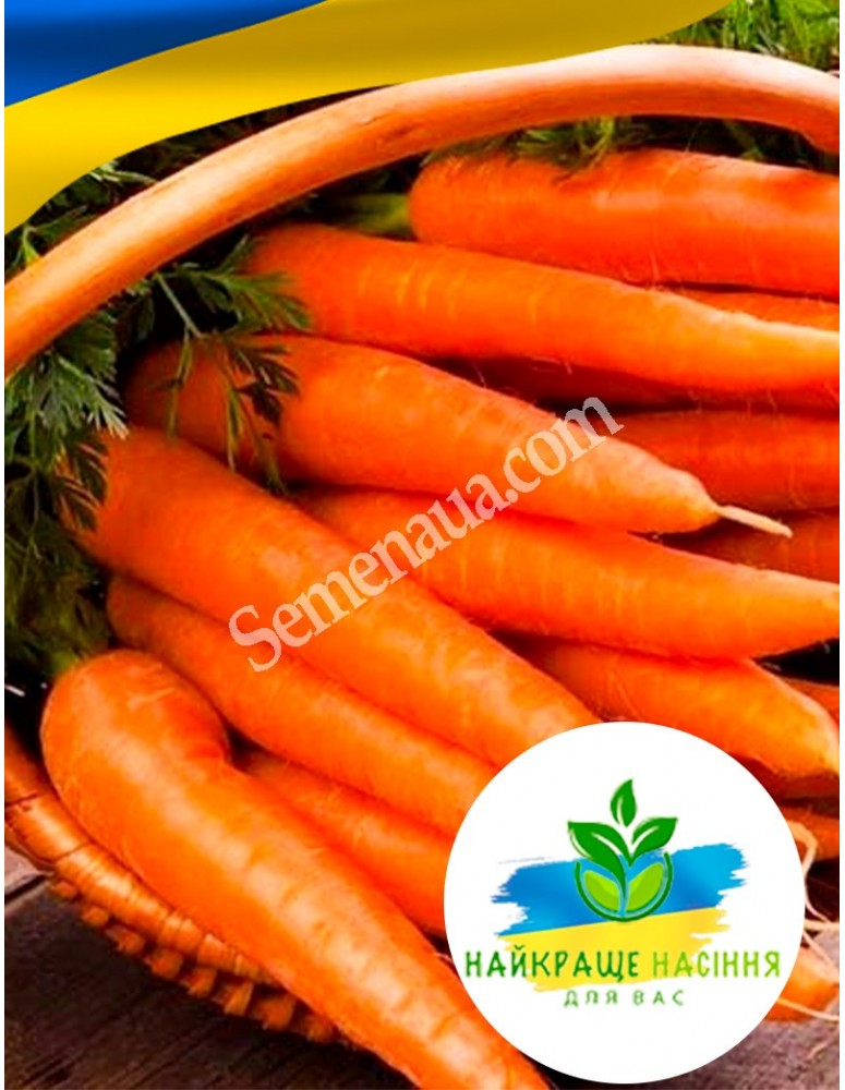 Високоврожайний середньопізній сорт. Коренеплід видовжено-конічної форми, масою 150-250г, довжиною 20 см та більше. М'якуш щільний, солодкий, оранжевого кольору, з високим вмістом каротину. Серцевина середнього розміру. оранжева. Смакові якості відмінні. Лежкість хороша. Насіння висівають на глибину 1,5-2 см з відстанню між ними 20-25 см. Сходи... Докладніше