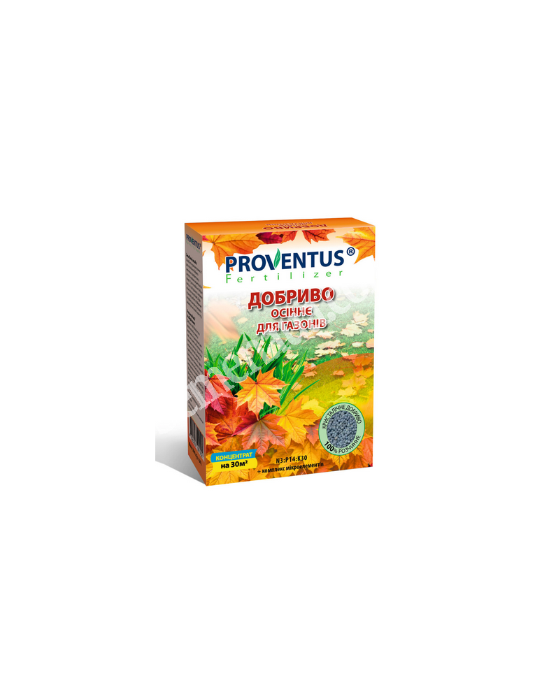 - Осіннє добрив Провентус сприяє збереженню чудового виду газону, збільшує родючість грунту, створює умови для інтенсивного росту культур навесні;