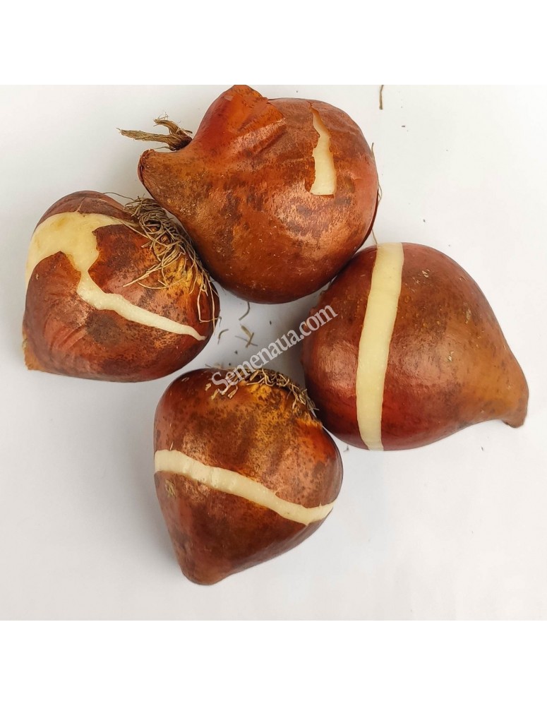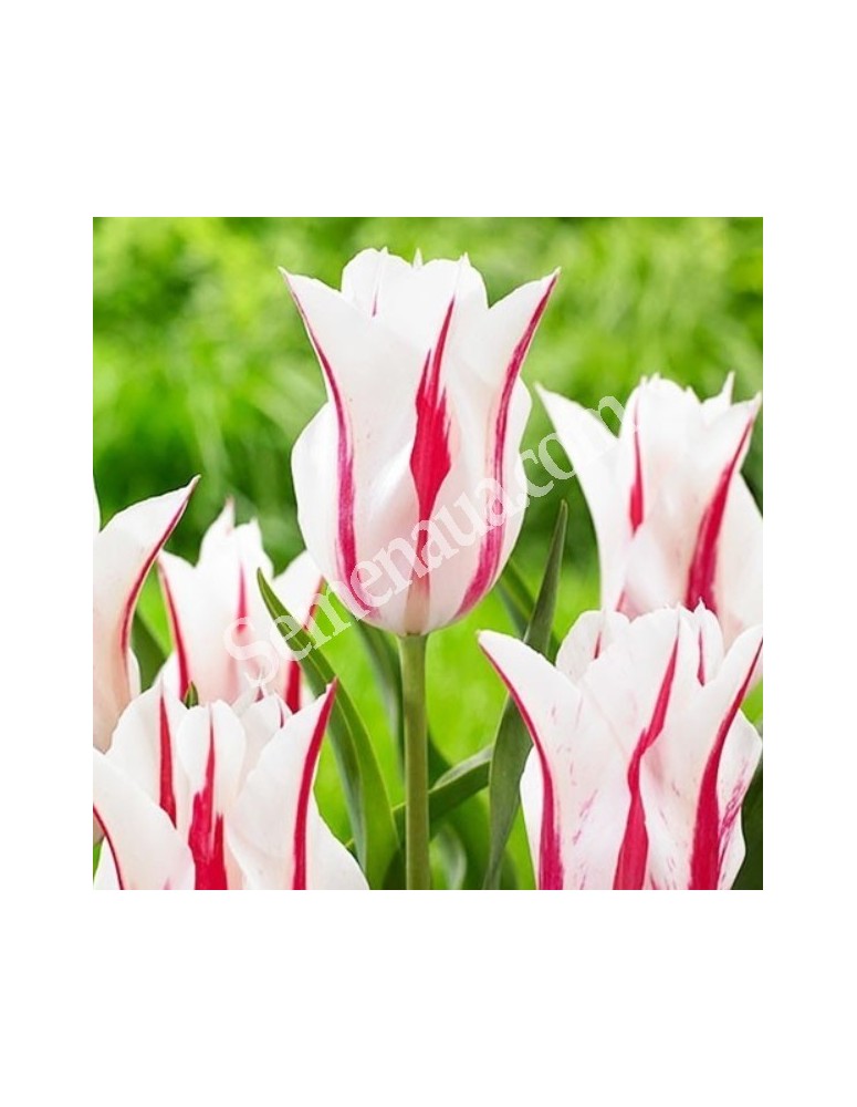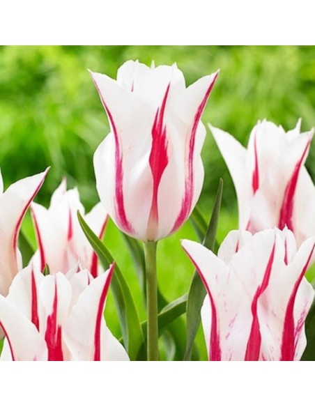 Гарний великий квітка вершково-білого кольору з широким полум'ям солом'яного червоного, який звужується на кінчиках пелюсток. Підстава з пір'ястим візерунком і з таким же чудовим кольором. Квітки підносяться на сильних квітконосах і створюють контраст широкої сизо-зеленому листі. Вони поодинокі, з довгими загостреними відігнутими пелюстками. Мають прекрасний аромат. Виключно довго стоять у воді і не змінюють свою форму. Цвітіння пізніше і доводиться на кінець квітня-початок травня. Квітконосне стебло досягає до 50-55 см у висоту.