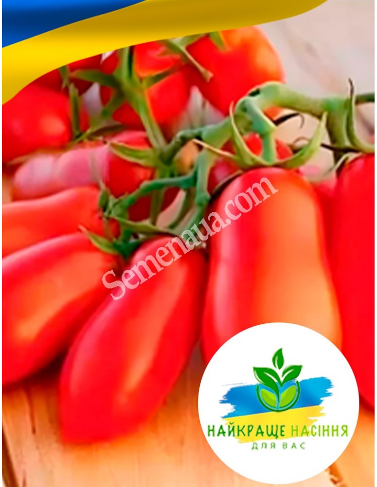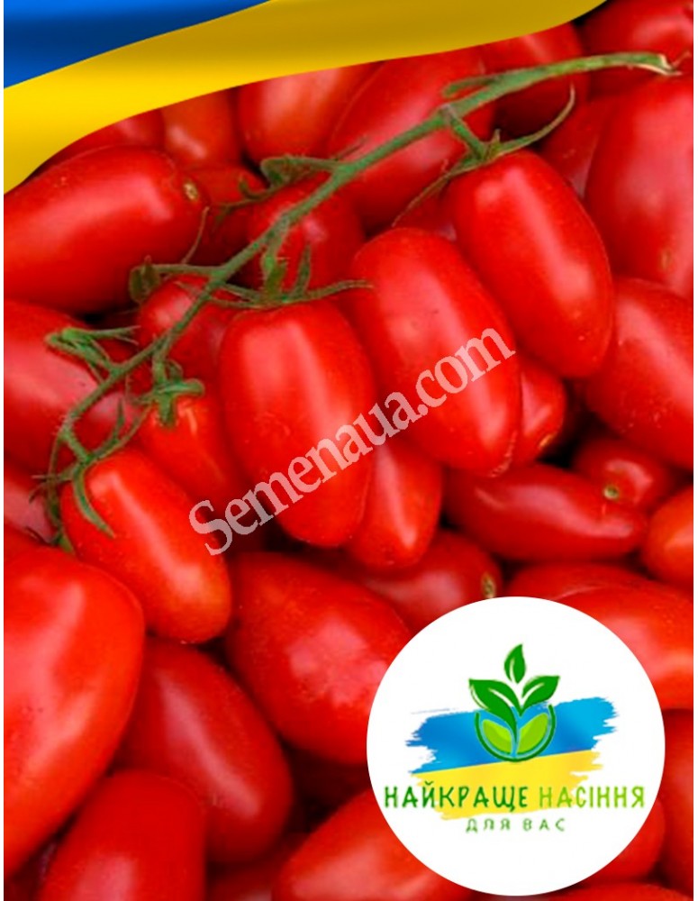 Сорт ранньостиглий. Перші плоди дозрівають через 95-110 днів після появи повних сходів. Кущ детермінантний і компактний, не вимагає підв'язки та пасинкування. Його висота в відкритому ґрунті не перевищує 60-65 см, а в теплицях може доходити до 1,2 м. Плоди червоні, подовжено-циліндричної форми, двокамерні, з гладкою поверхнею, можлива незначна ребристість. Середня маса плоду від 50 до 70 г. Прекрасно підходять для цільноплідного консервування, приготування маринованих і свіжих салатів. Транспортабельність і лежкість хороші. Помідори не розтріскуються. На розсаду насіння висівають в кінці березня - на початку квітня, накривають плівкою, підтримують температуру в приміщенні 20-25 °С. У відкритий ґрунт розсаду висаджують у віці 40-60 днів, коли мине загроза заморозків або на два тижні раніше під парник. Схема посадки 70х40. При гарному догляді урожай з куща - до 10 кг за сезон.