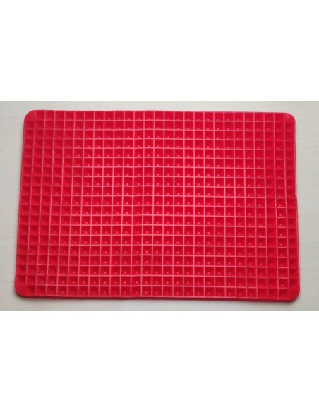 На поверхні є невеликі пірамідки рівного розміру. Завдяки цьому нагрівається повітря циркулює, гарантуючи, що Ваше блюдо буде приготовлено в більш короткі терміни. Силіконовий килимок-піраміда pyramid pan захищає їжу від пригорання, на її поверхні утворюється тільки рум'яна золотава скоринка. Це забезпечується завдяки відсутності контакту продуктів з поверхнею духової шафи.