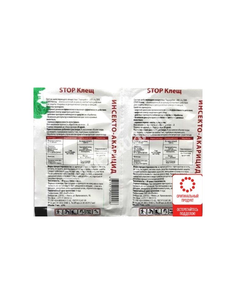 Меры безопасности: 3й класс опасности (умеренно опасное вещество). Не фитотоксичен. Опасен для рыб. Не допускать попадания в водоемы. Среднеопасен для пчел (2кл). Во время цветения обработка запрещена. Для приготовления раствора не использовать пищевую посуду. Обработку проводить в отсутствии детей и животных, используя защитную одежду, очки, респиратор, перчатки. После работы вымыть лицо и руки с мылом, прополоскать рот, в случае попадания препарата в глаза или на кожу, промыть большим количеством воды. При случайном проглатывании выпить несколько стаканов воды с активированным углем (5-6 таблеток на стакан). Вызвать рвоту. Обратиться к врачу. Хранить при температуре от -20С до +30С, отдельно от лекарственных препаратов и продуктов питания, в сухом, темном, не доступном для детей месте. Пустые ампулы, препарат с истекшим сроком годности сжигать. Рабочий раствор хранению не подлежит.